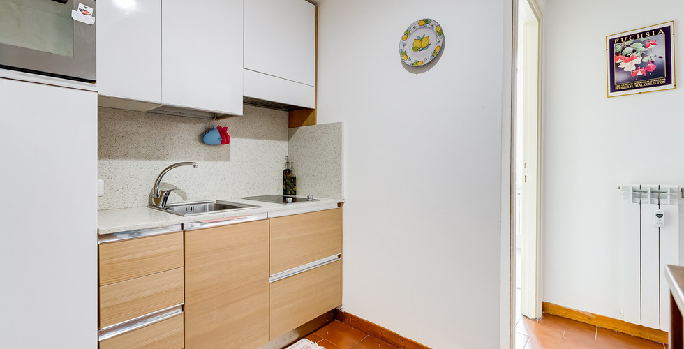 L'appartamento, che può essere rimodulato a piacere, è attualmente organizzato in un ingresso con cucina a vista, una grande camera ben suddivisa in zona living e zona notte, un comodo bagno.